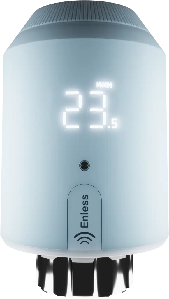 The Enless LoRaWAN Thermostatic Valve is designed for hydronic radiator systems and enables strict enforcement of BMS-defined setpoints. Through the LoRaWAN protocol, the valve allows both room temperature monitoring and, more importantly, remote reception of control commands.